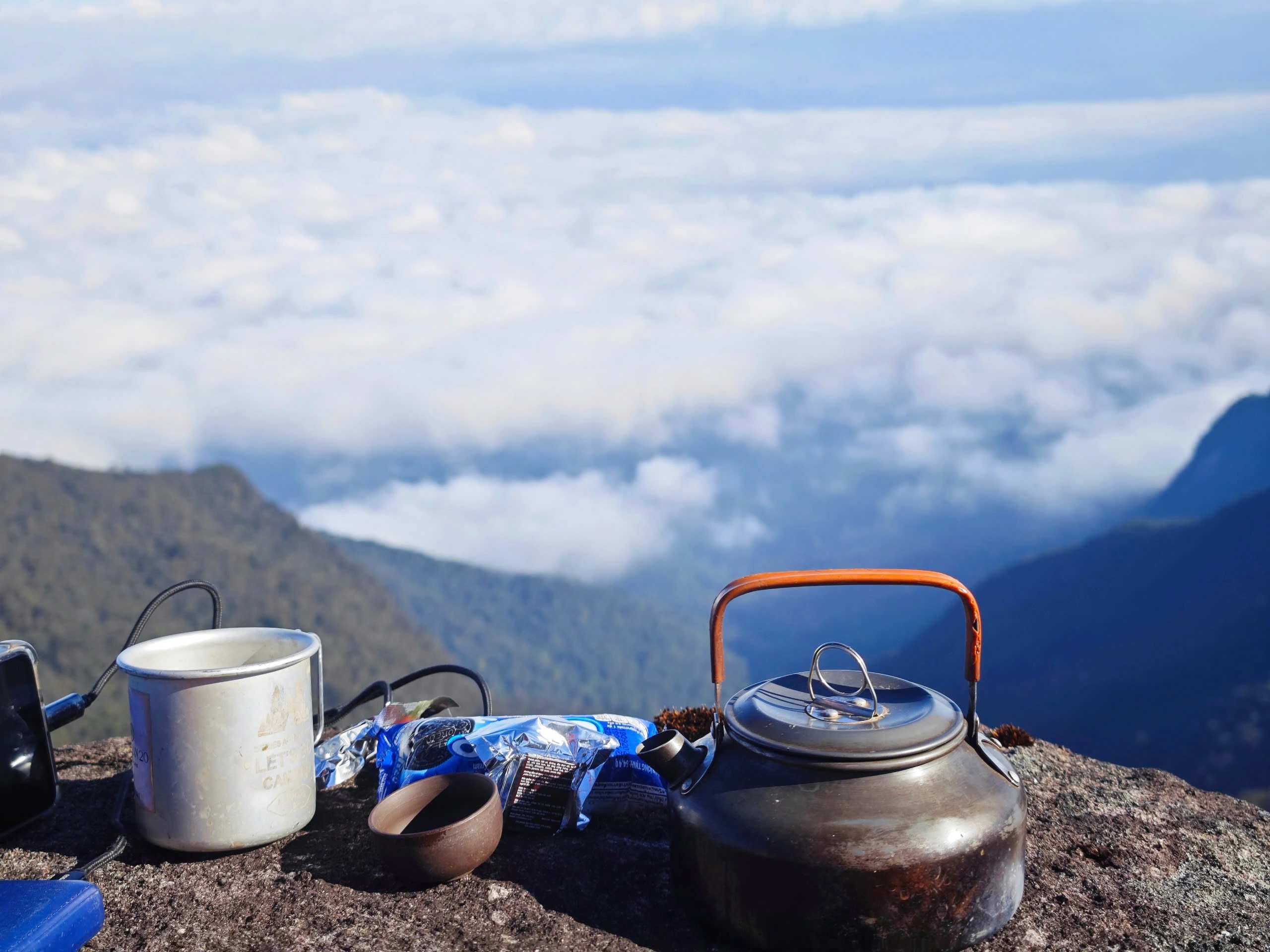 Sau đó, anh chụp ảnh kỷ niệm tại hai đỉnh Vọng Phu, pha cà phê, ngồi ngắm cảnh khoảng một tiếng trước khi xuống núi.