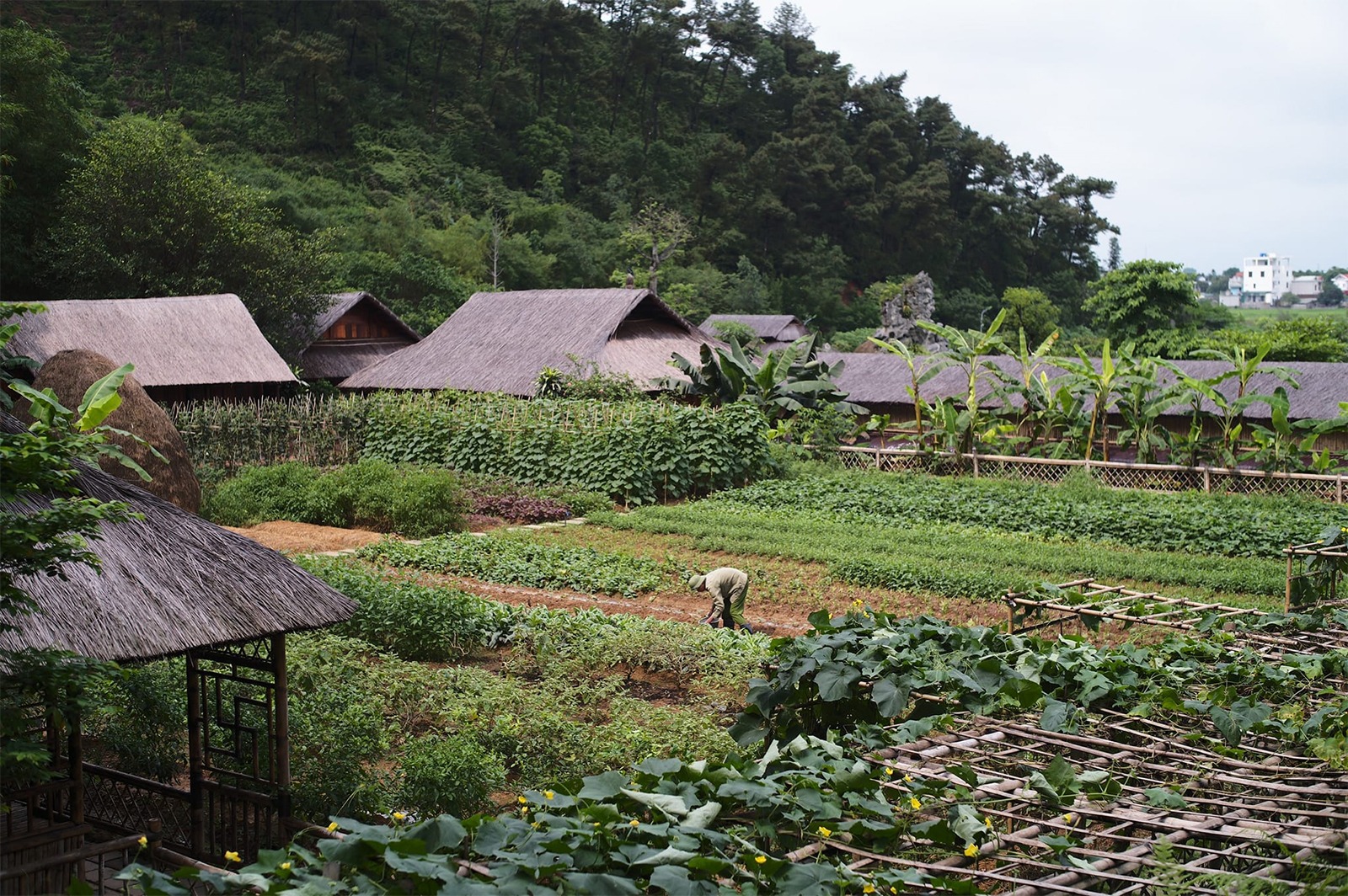 Trong khuôn viên, khách sẽ tìm thấy các khu vườn rau, trái cây, thảo dược do các sư cùng người dân chăm sóc. Dưới chân núi, nhà trồng nấm khoảng 20 m2 cung cấp lương thực sạch cho các bữa lẩu chay hoặc để làm ruốc.