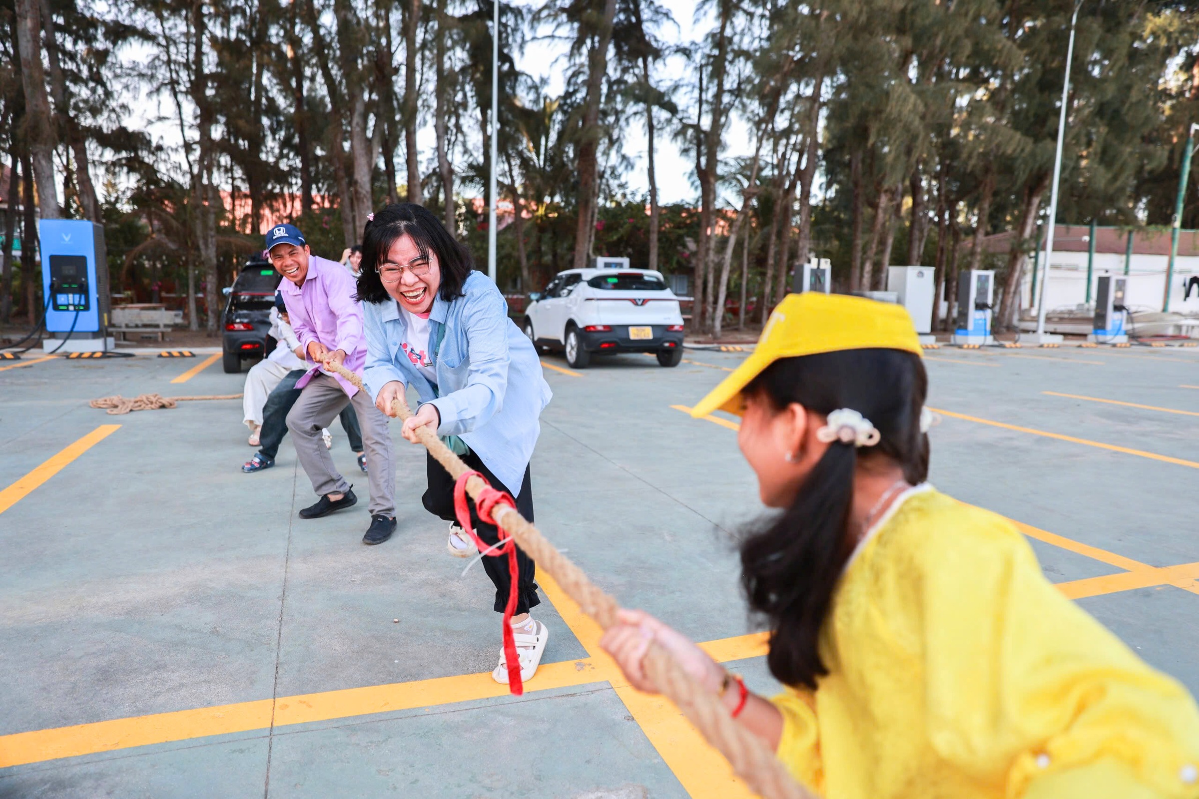 Nhiều du khách còn kết hợp tìm hiểu dự án bất động sản tại Vinhomes Green Paradise. Đại gia đình 12 người của chị Quế Anh (45 tuổi, Đồng Tháp) hào hứng tham gia kéo co cùng nhiều trò chơi khác tại hội xuân. “Tôi biết đến dự án cả năm nay, nay mới có dịp đi tìm hiểu thực tế, hy vọng sẽ có dịp đầu tư ở đây”, chị nói.