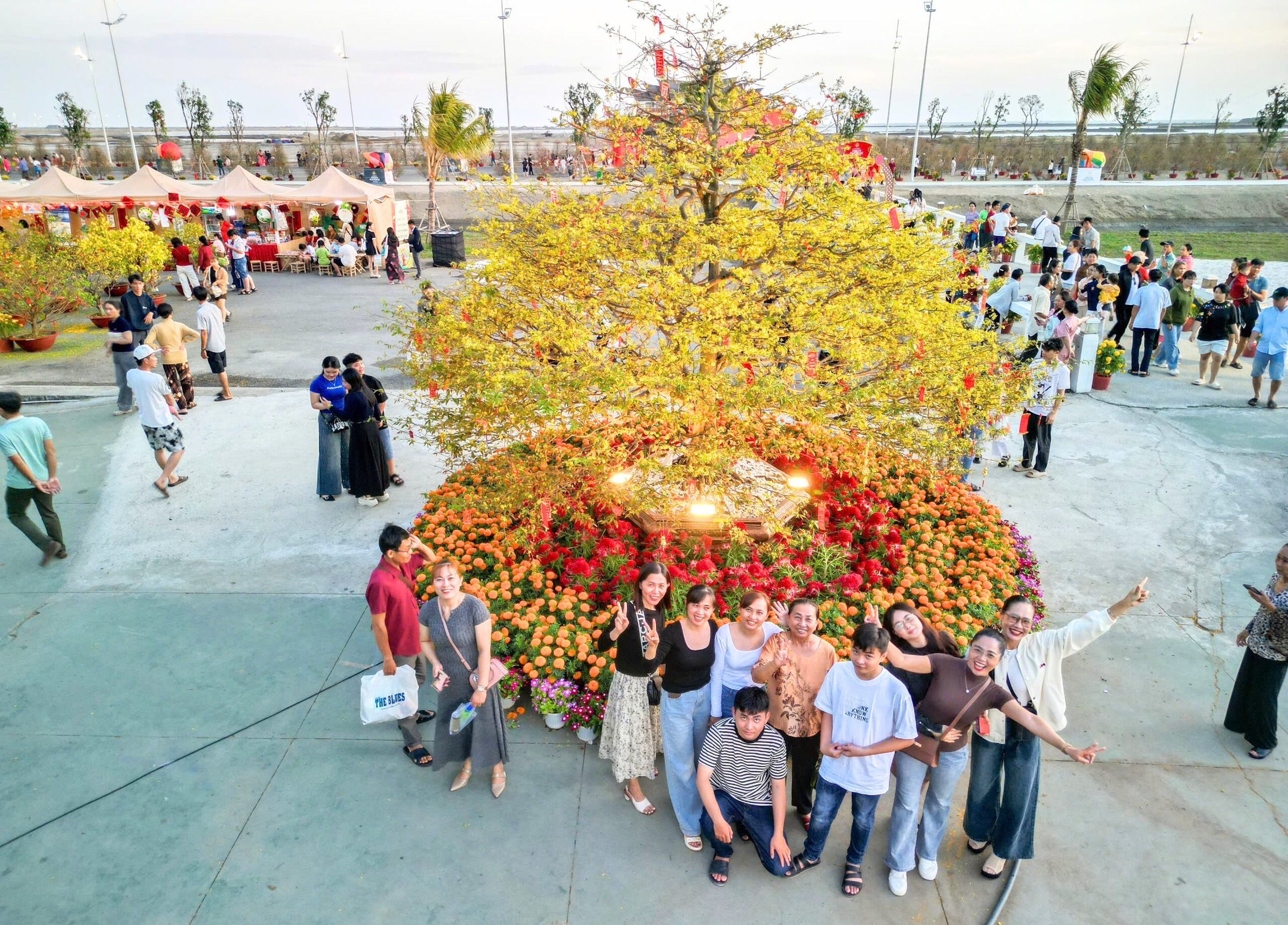 Gia đình 12 người của chị Trúc Ly hào hứng tạo dáng bên cây mai 150 tuổi. Nhà ở gần lễ hội, chị cho biết Cần Giờ từ lâu được ví như “lá phổi xanh” của thành phố nhờ không khí trong lành, mát mẻ. Chị mong muốn các doanh nghiệp tăng cường đầu tư vào du lịch, tổ chức thêm nhiều hoạt động, lễ hội quy mô tương tự Green Paradise Tet Fest để thu hút du khách đến địa phương. “Có thêm nhiều hoạt động vui chơi, chắc chắn Cần Giờ sẽ phát triển hơn trong tương lai”, chị bày tỏ.