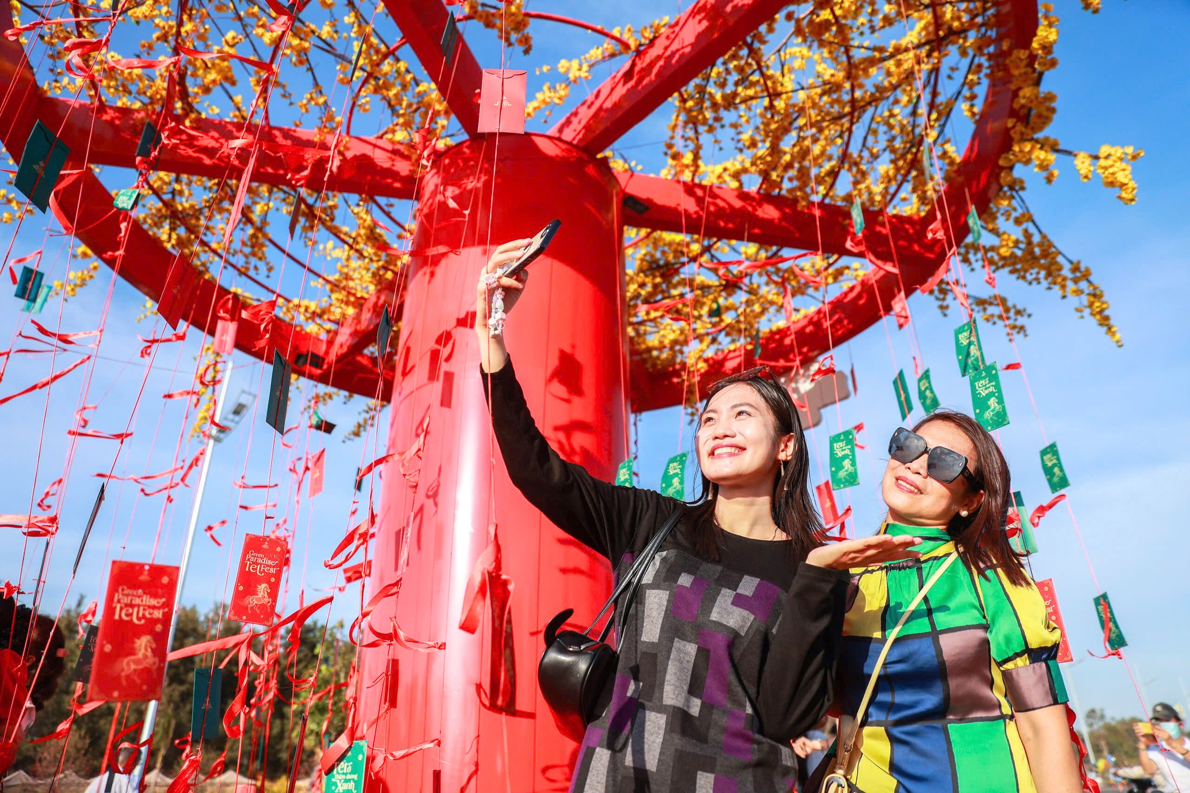 Cây mai Phú Quý 150 tuổi, nở hoa rực rỡ là một trong số điểm nhấn tại lễ hội Green Paradise Tet Fest hút du khách những ngày đầu năm.