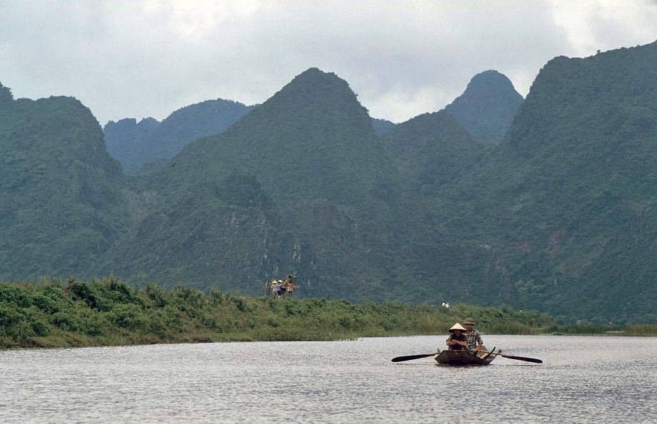 Du khách người Đức Hans-Peter Grumpe ghi lại cảnh sắc chùa Hương trong chuyến xuyên Việt năm 1991, khi ông xuôi dòng suối Yến vào động Hương Tích trên thuyền nan chèo tay.