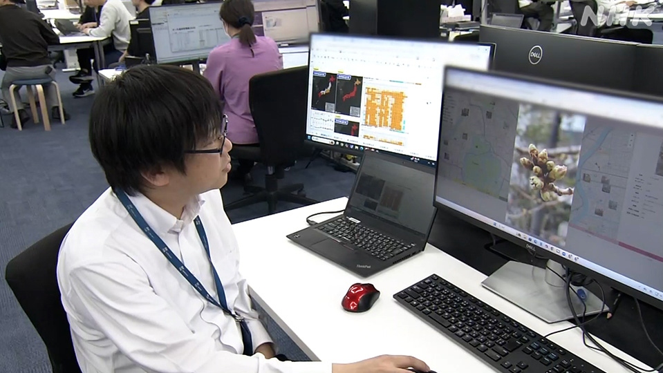 Năm nay, Weathernews triển khai dịch vụ dự báo qua ứng dụng di động. Trí tuệ nhân tạo (AI) đã phân tích hơn 10.000 mẫu nụ hoa để đưa ra kết quả ngay lập tức khi người dùng cung cấp ảnh chụp. Trong mùa trước, dịch vụ này đã thu thập được 55.000 lượt ảnh.